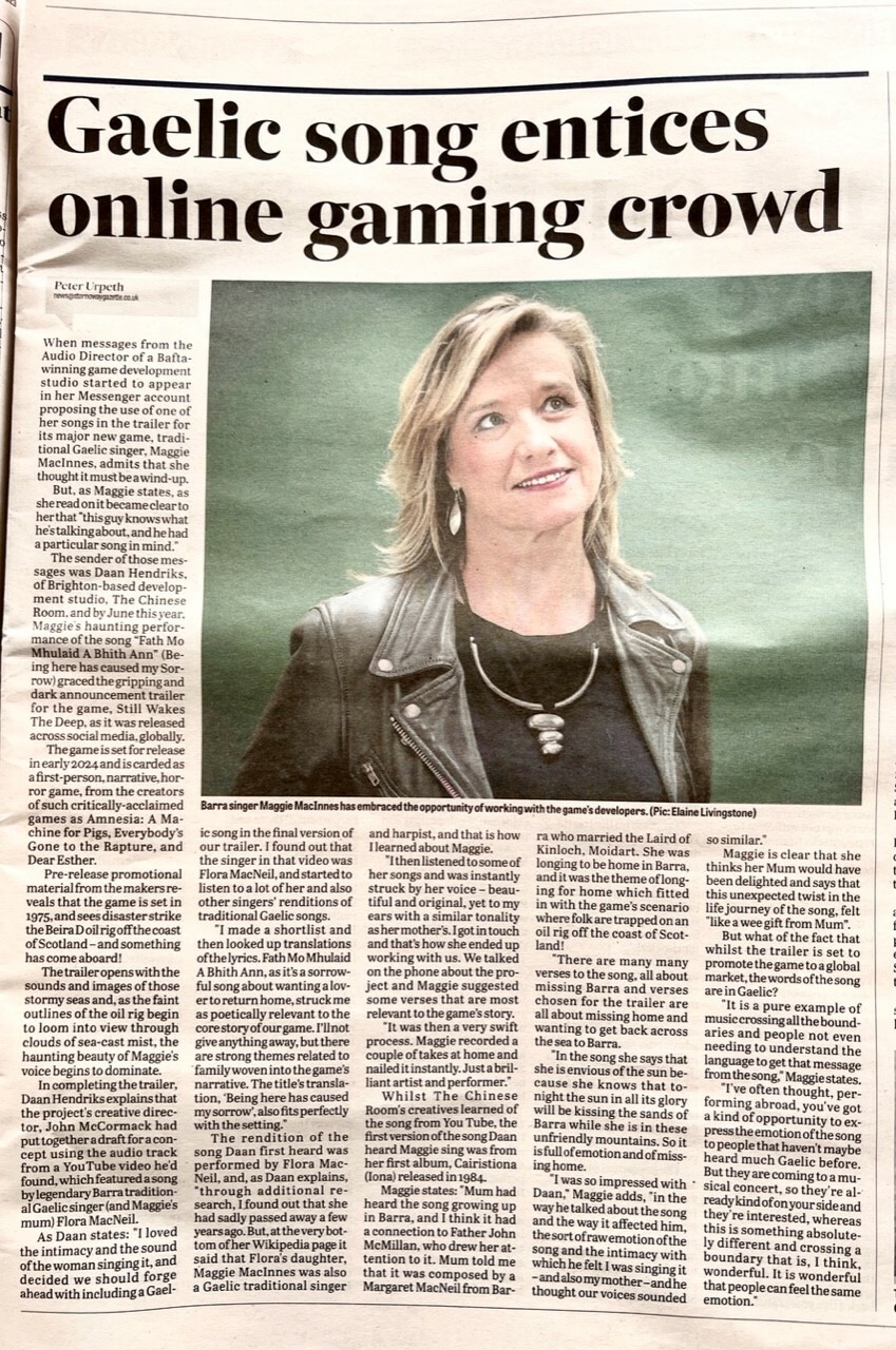 This story has now been covered by the local press in the Outer Hebrides, too! That interest was a lovely surprise”